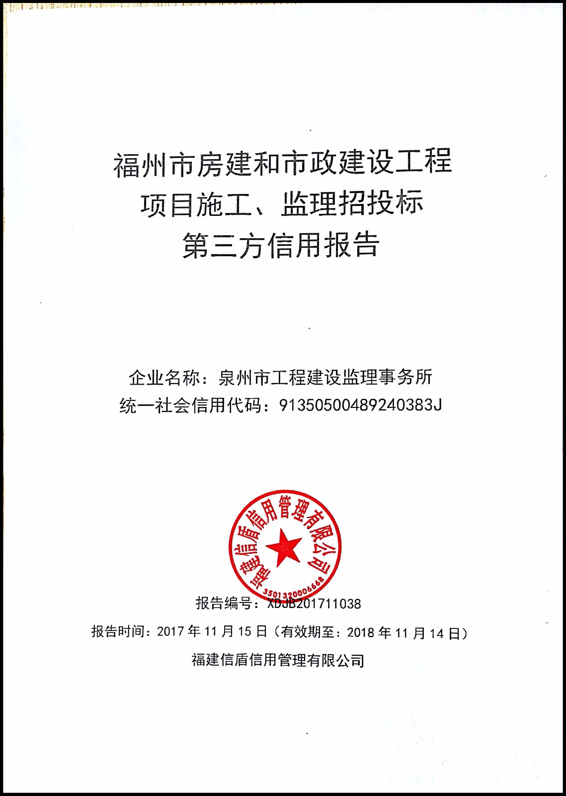 泉州市工程建設監理事務所 XDJB201711038