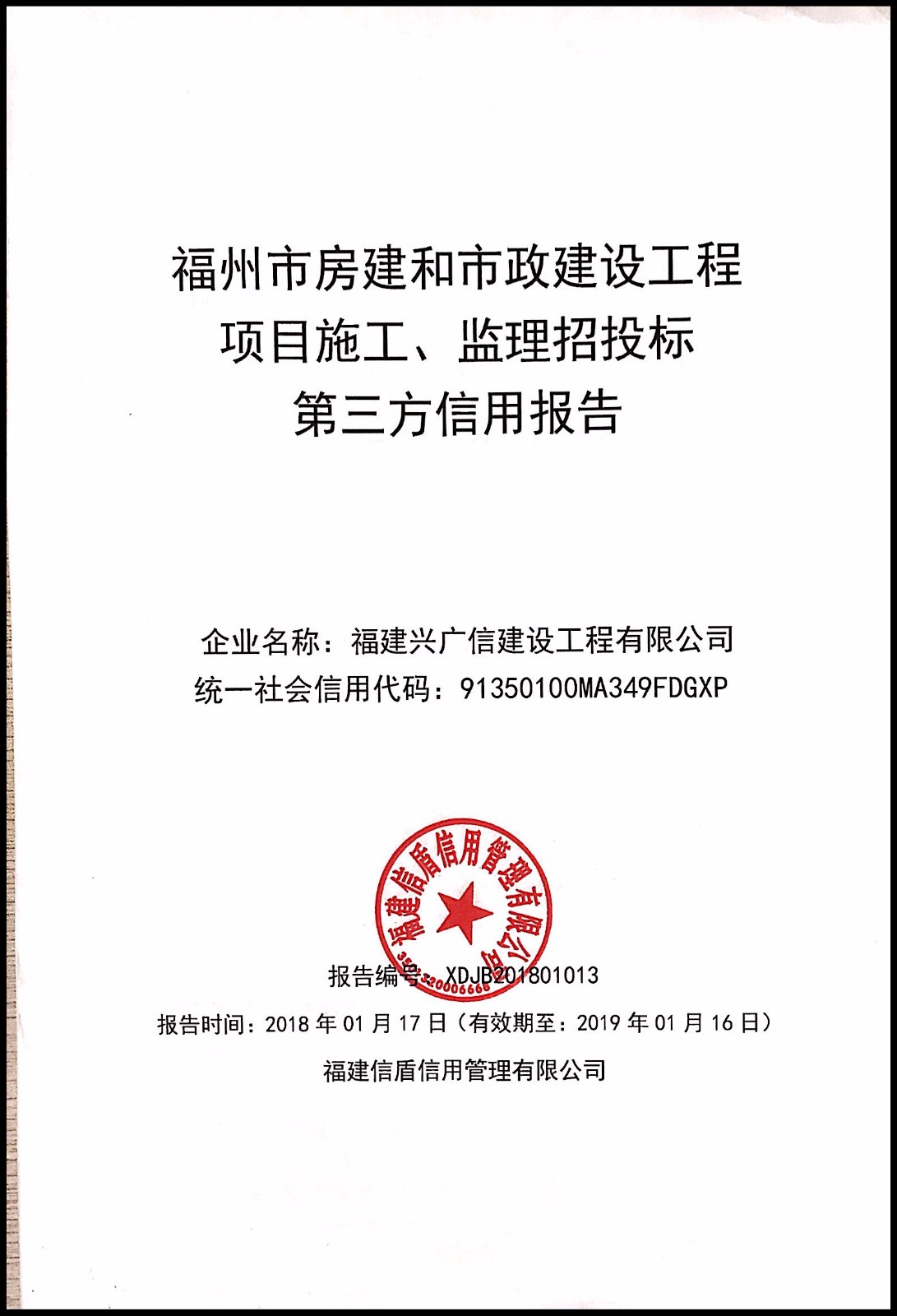 福建興廣信建設工程有限公司 XDJB201801013