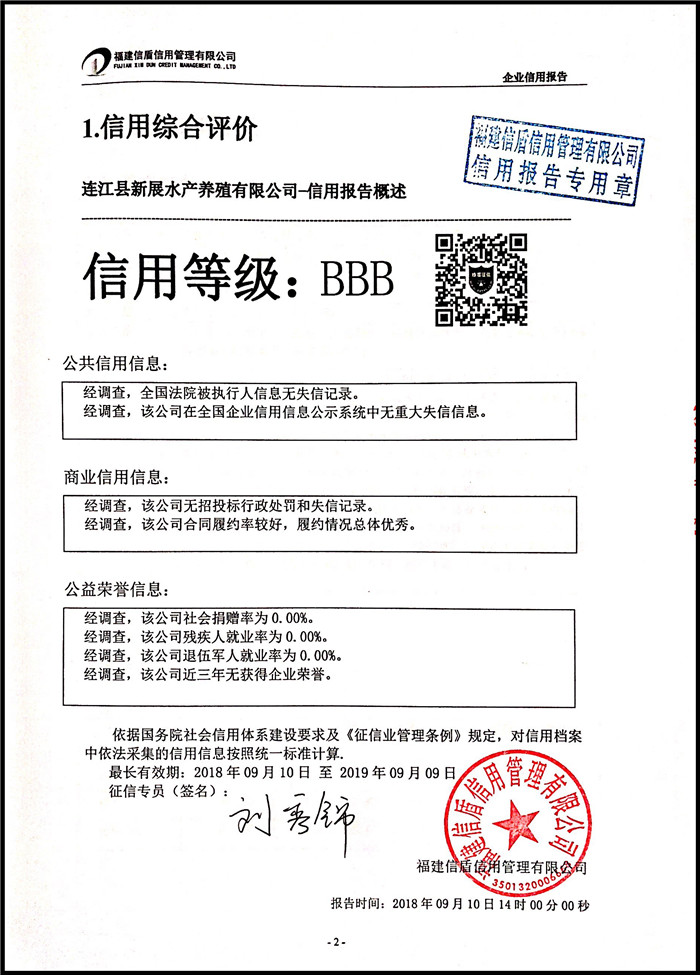 連江縣新展水產養殖有限公司 XDBD201809015